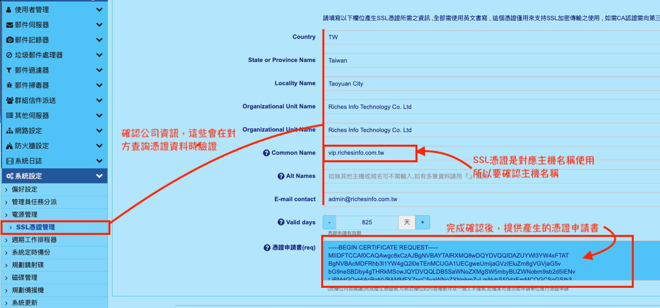 後續客服信箱會發信到管理者,提供憑證證書(mail_richesinfo_com_tw.crt) / 中繼憑證證書 (My_CA_Bundle.ca-bundle)